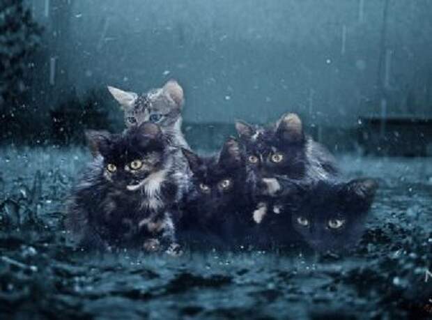 Вышел, обошел вокруг машины и тут… к нему на ноги из темноты выпрыгнул котёнок! Пушистый, мурчащий, тёплый. Он стал играть со шнурками Дмитрия, пока тот в глубоком шоке смотрел на него. Откуда здесь, ночью, в безлюдном месте, на 100-километровом перегоне без единого населенного пункта, мог появиться котенок?! Однако, как оказалось, этот шок был ещё не настоящим) В следующую минуту, когда Дима позвал котенка «киса, киса» и погладил его по спинке, на зов выскочили… ещё четверо ПОЛНОСТЬЮ СУХИХ котят! Вот это уже было настоящим чудом.