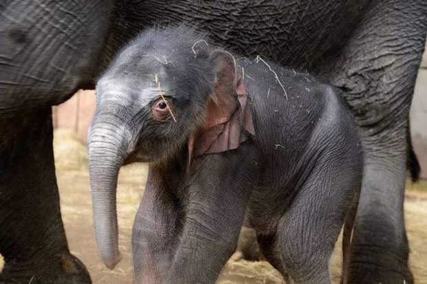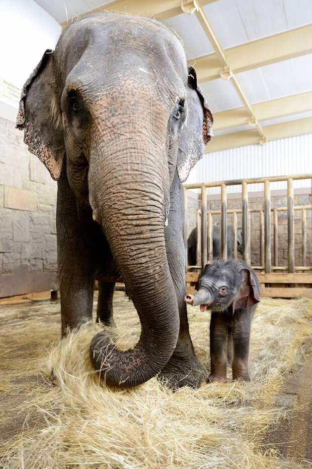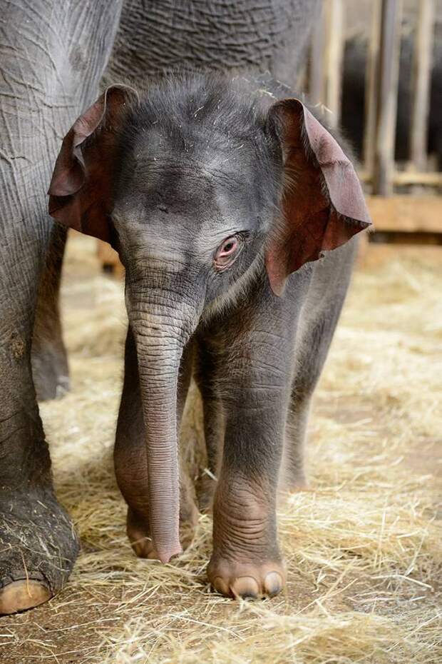 Вместо двух лет - именно столько длится беременность слоних - Кева носила его всего 22 месяца, поэтому слоненок очень маленький и весит не положенные 140, а только 100 килограммов.