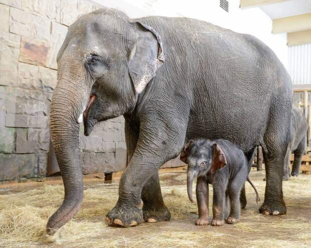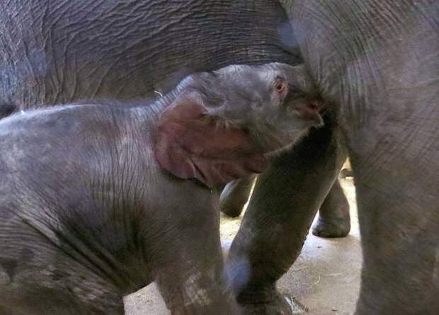 «Мы знали, что он должен был скоро родиться, но не знали, что так скоро. Из-за ранних родов и маленького веса слоненка Кева родила его сама без помощи врачей, и это замечательно. Слоненок пока безымянный, скорее всего, это девочка», - сказал директор Берлинского зоопарка Тиерпарк Андреас Кнерием.