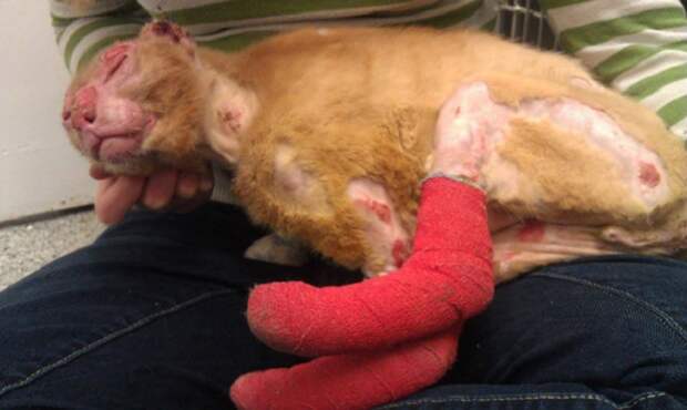 Расселл, вероятно, никогда полностью не поправится — недавно, к примеру, ему сделали операцию на лапки. Однако благодаря пожертвованиям кот живет в клинике, где его любят, холят и лелеют.
