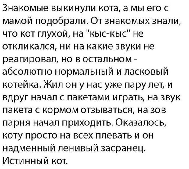 А у вас никогда не возникало ощущения, что Ваш кот Вас не слышит?)