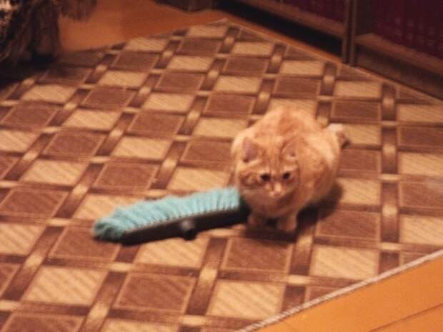 Еще у него есть любимая щетка, которую он носит в зубах и орет, словно мартовский кот на крыше. Записать и воспроизвести его котячьи рулады в этот момент невозможно. Это не просто мявканье, это кошачья ария, апофеоз его неразделенной любви и горького сожаления об утраченном достоинстве, кот кастрирован. Но не пытайтесь отобрать у него любимую щетку.