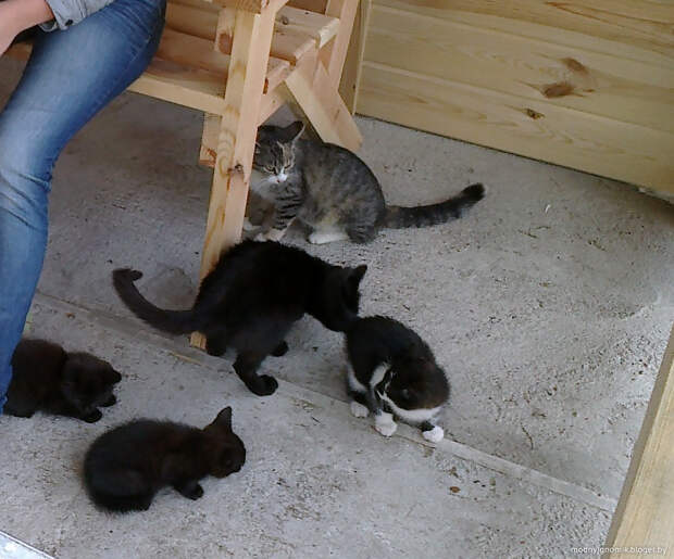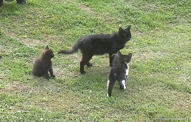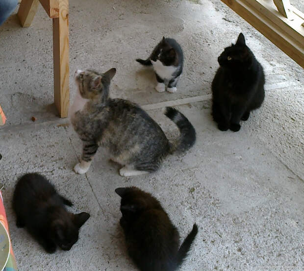 В этом году уже другие, молодые коты у соседей, не познакомились еще)) Решили кормить на расстоянии от дома, все- таки и неприятностей от них много((
